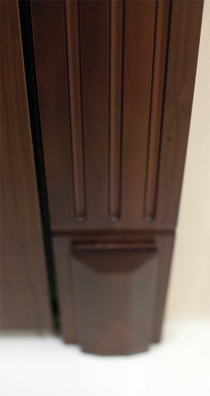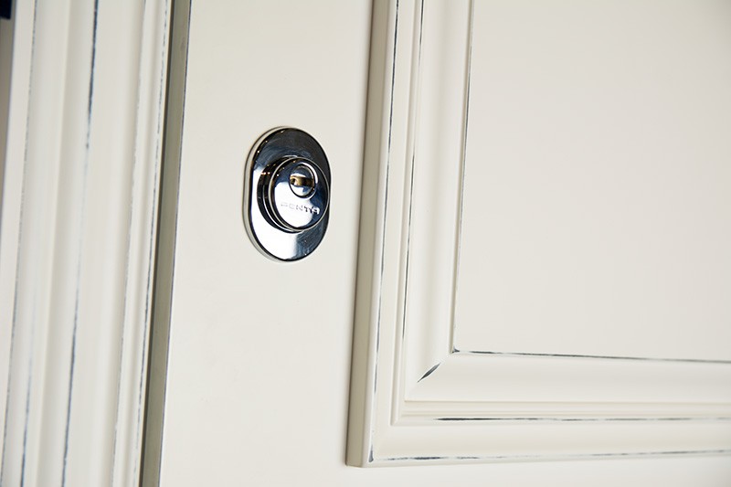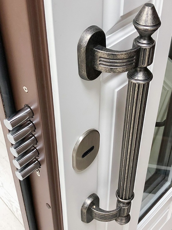 Декоративные втулки (цвет хром) для отверстий под: противосъемные штыри (в петлевой части коробки), вертикальные приводы (в верхней и нижней части коробки).