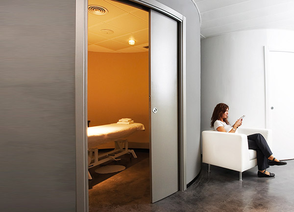 С ECLISSE Circular Unico вы можете установить пенал для раздвижной двери внутри изогнутой поверхности.